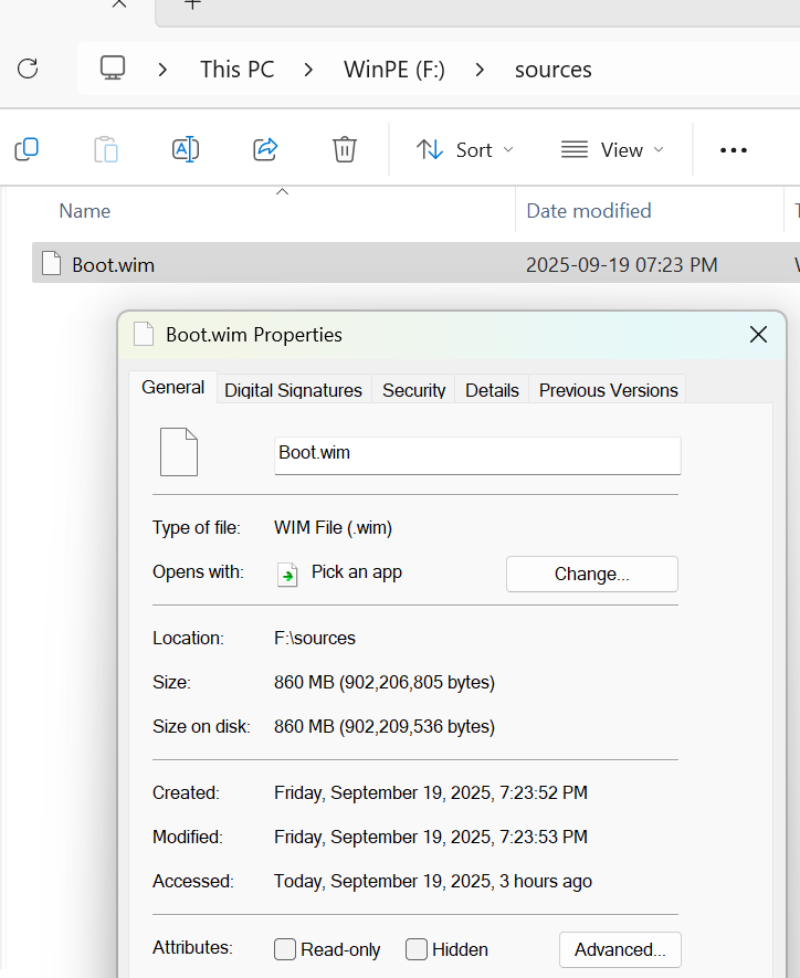 - Tập tin WIM này thông thường có tên là boot.wim nằm trong \Source của WinPE. Đôi khi các nhà phát triển có thể đổi tên khác, hoặc đặt nơi khác Source. Nhưng vẫn phải có phần mở rộng là wim.