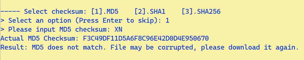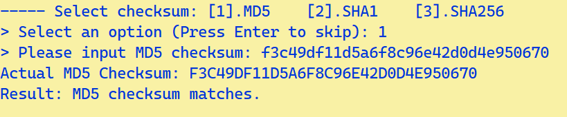 - Select an option: Chọn 1 là mã MD5, chọn 2 là mã SHA1, chọn 3 là mã SHA256.
