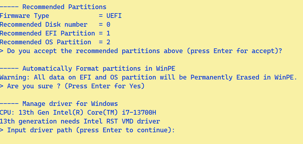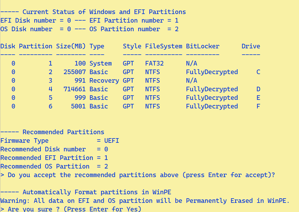 Automatically Format partitions in WinPE: Tự động định dạng phân vùng trong WinPE.
